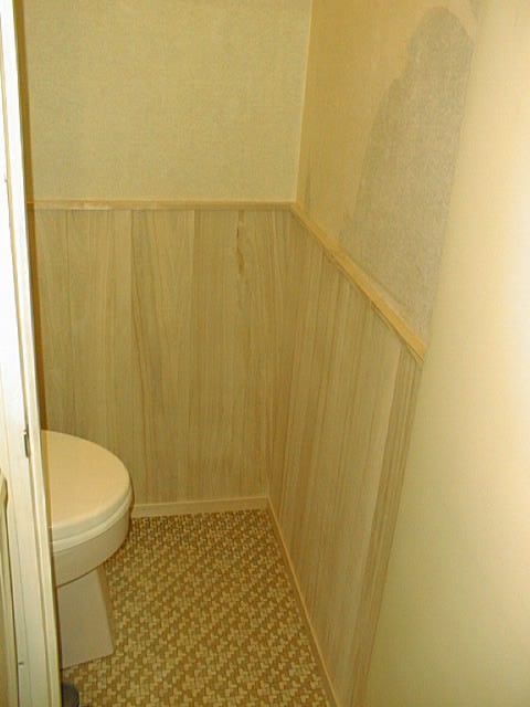 トイレです。腰までを桐のフローリング材(12ミリ厚)をつけたところです