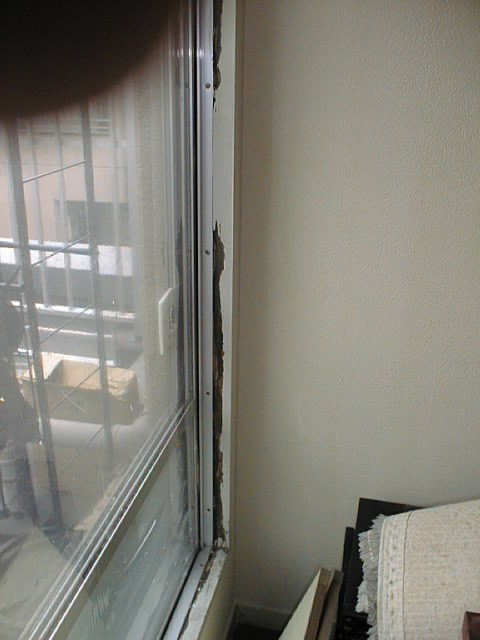 洋室1−壁は塗り終わっています。サッシの枠が黒いところは、結露でペイントがはがれたところで、
