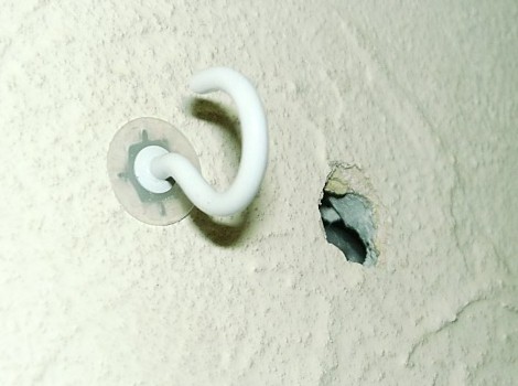 理由は簡単、石膏ボード用の取り付けトグラーの寸法の小さいのを無理矢理付けようとして金槌でたたきすぎたため