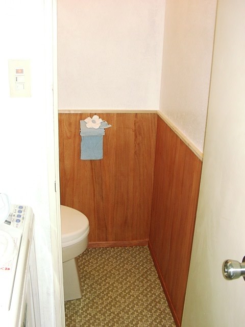 トイレの腰壁は、塗料を薄めずにそのままで塗りましたが、少し赤みがきついかな。