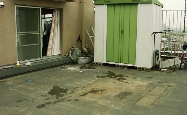 システムガーデンを置く場所です。プランターなどを片づけて搬入を待ちます。